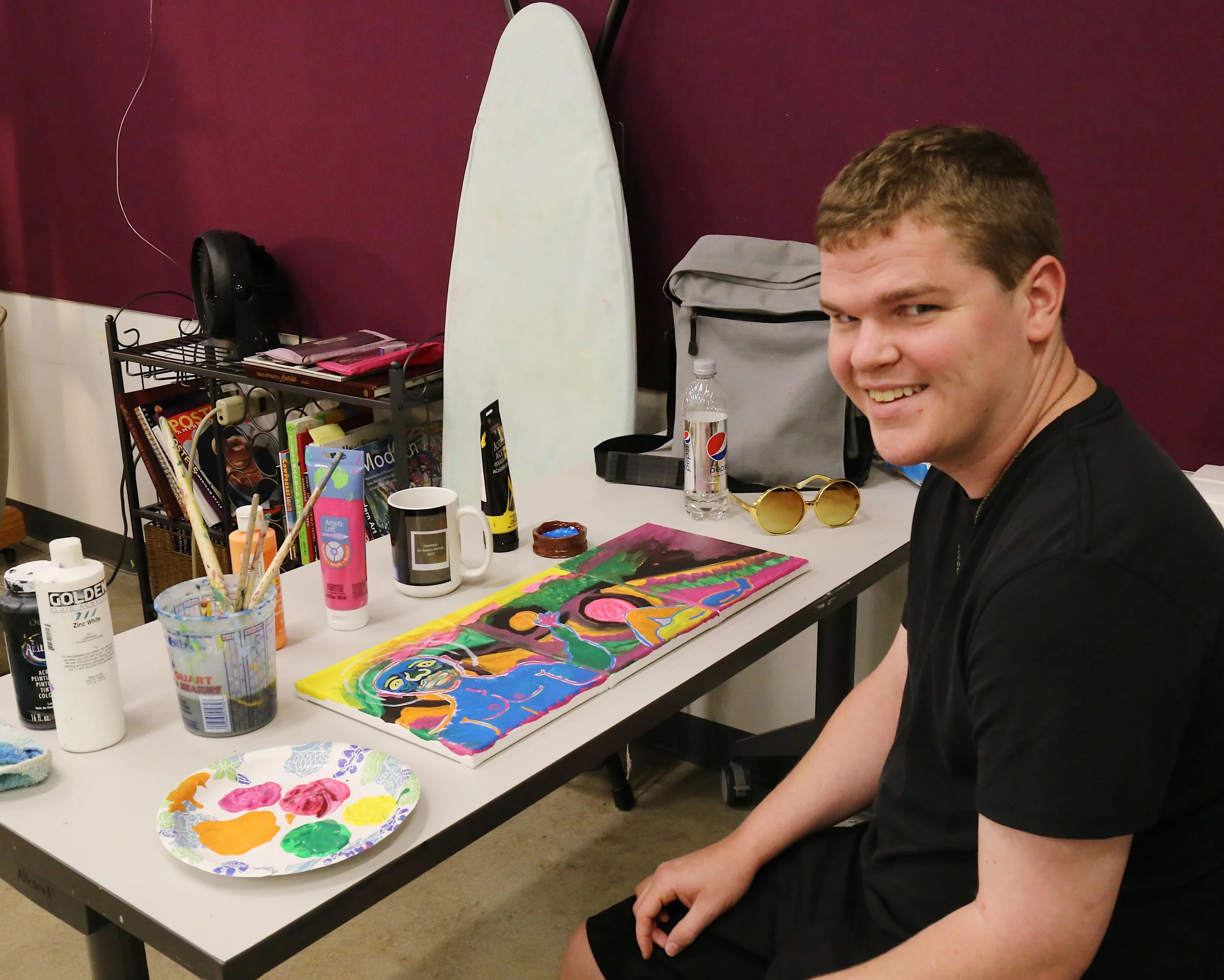 The artists are supported by two staff who work with them to determine what their preferred medium is, teach new processes and techniques, find out what they hope to get out of the career, and help set them on the path that will make them most successful by focusing on their strengths. The Emerging Artists have previously shown in the UnPlaza Art Fair, First Fridays, downtown, and the Prairie Village Art Show, among others.