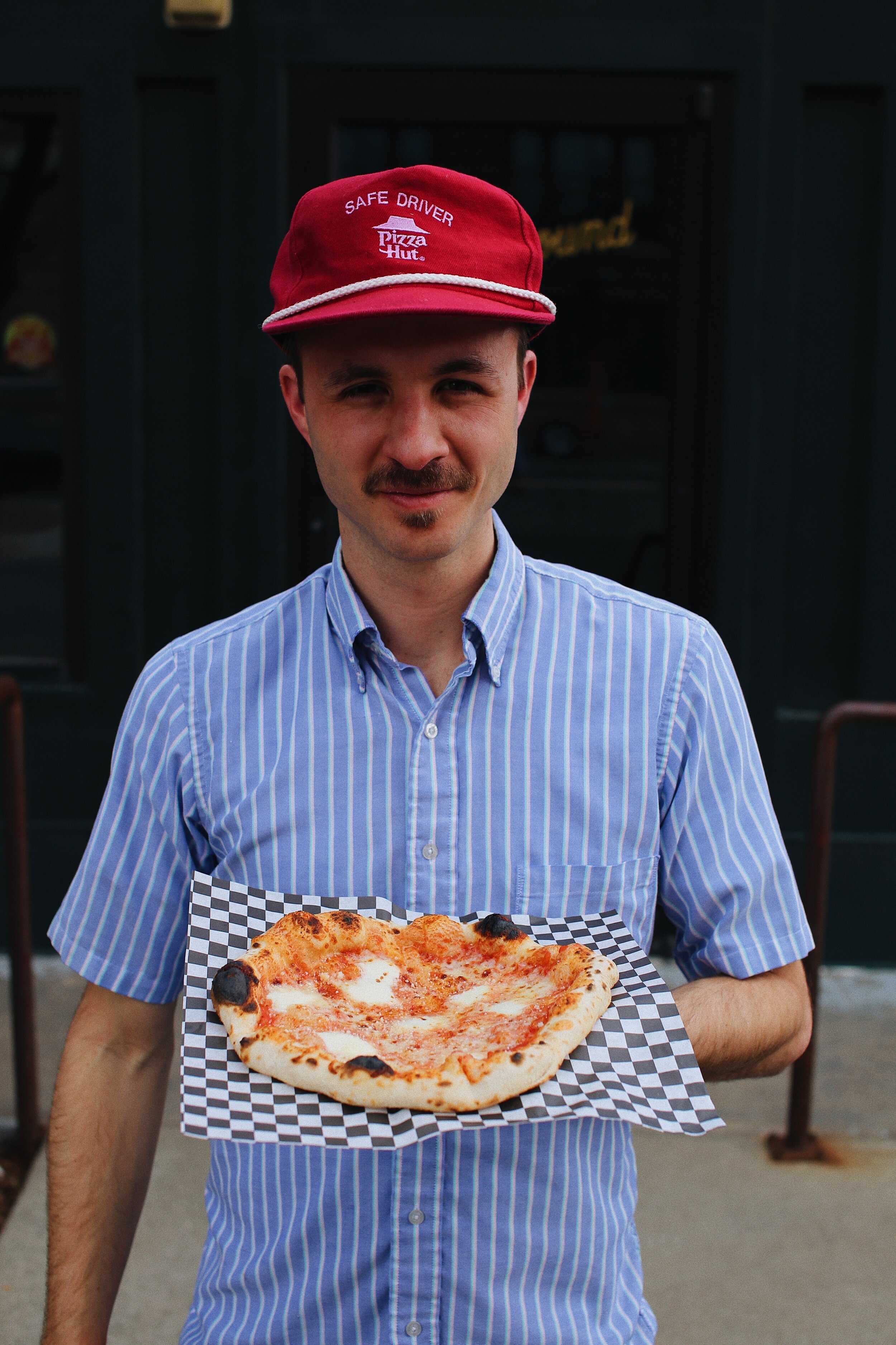 We're minimal, but not traditional. I grew up eating different styles of pizza, so that's the inspiration for our regular menu. One of my favorite memories as a child was eating a New York slice with my mom at this place called Original Pizza. Cheese every time. My mom would cut it up into little bites. So I created a three cheese using a New York style mozzarella, but then I add some fresh mozzarella and a hard sheep's milk cheese. It's bonkers. We do a pepperoni in a more New York style, too. But using the super hot Neapolitan oven you get just a hint of char on the meat. Next level!