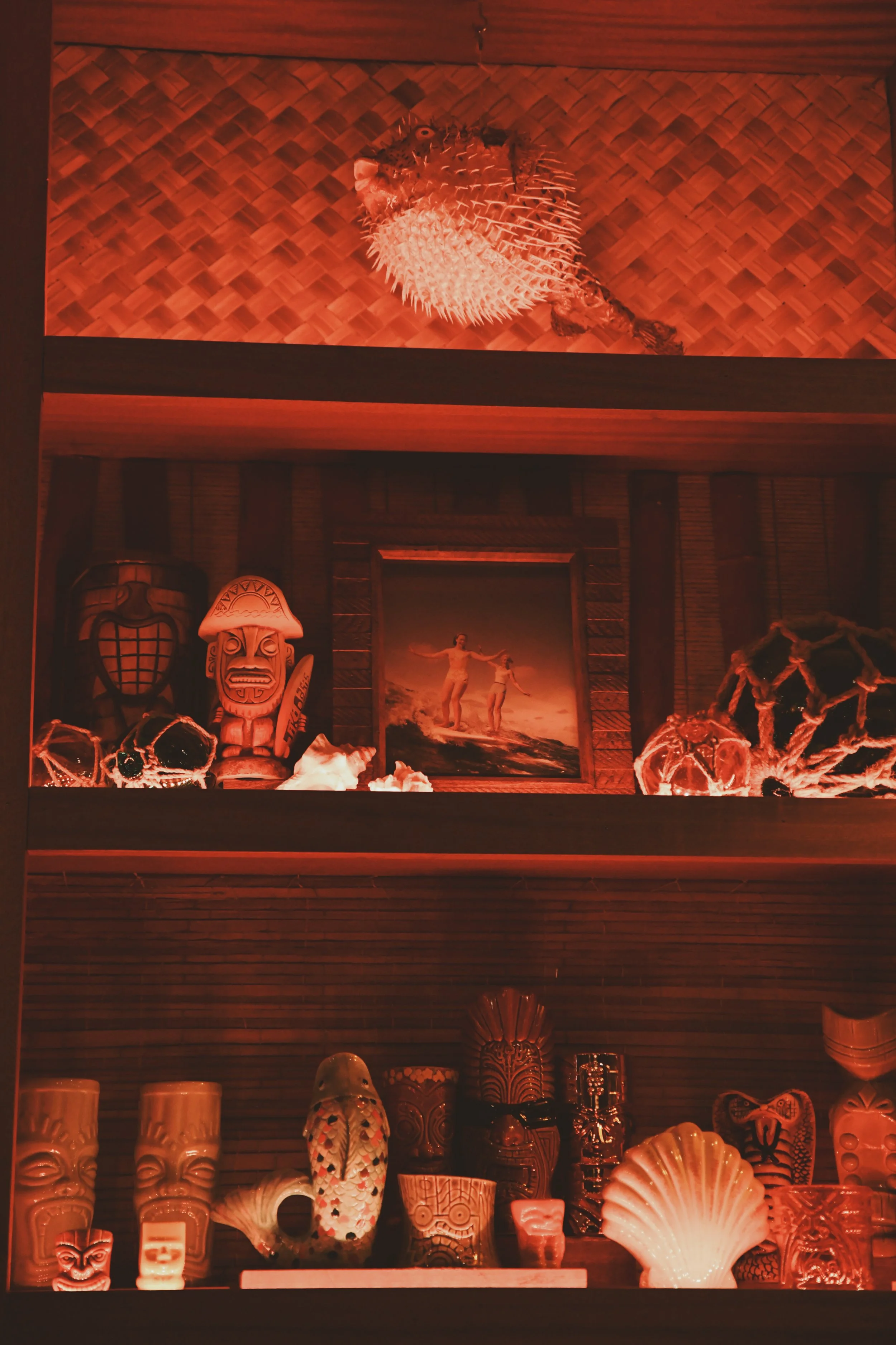 As a tequila-on-the-rocks, Old Fashioned, gin martini gal, typically the words “tiki drink” wreck havoc on my stomach. However, Kon Tiki defies all doubtful odds, serving up the most refreshing, perfectly semi-sweet Mai Tais, Piña Coladas, and even Pain Killers. The mid-century modern tiki lounge, which originally opened in 1963 and again in the Crossroads in August of 2024, has mastered beachy favorites and its own concoctions, like the Fiery Temptress, with a ghost pepper tequila base, spiced pear liquor, allspice dram, and cinnamon, and the Zombie (limited to one per person), which features premium aged rums, cinnamon, and absinthe. In addition to its cocktail menu, warm rattan lights, funky metal installations, beaded and velvet curtains, and exotic wallpaper immediately transported me out of the cold and into another era.
