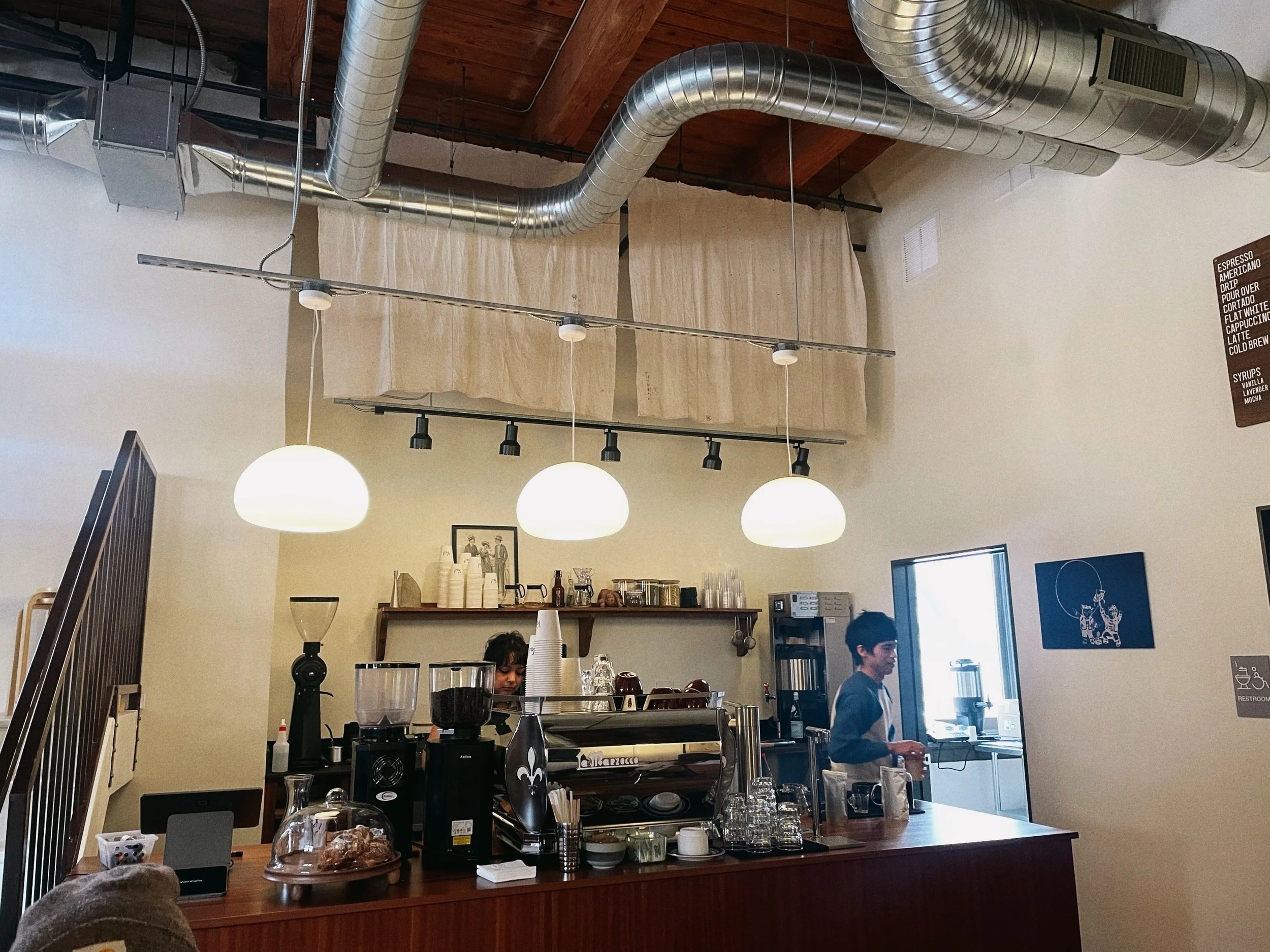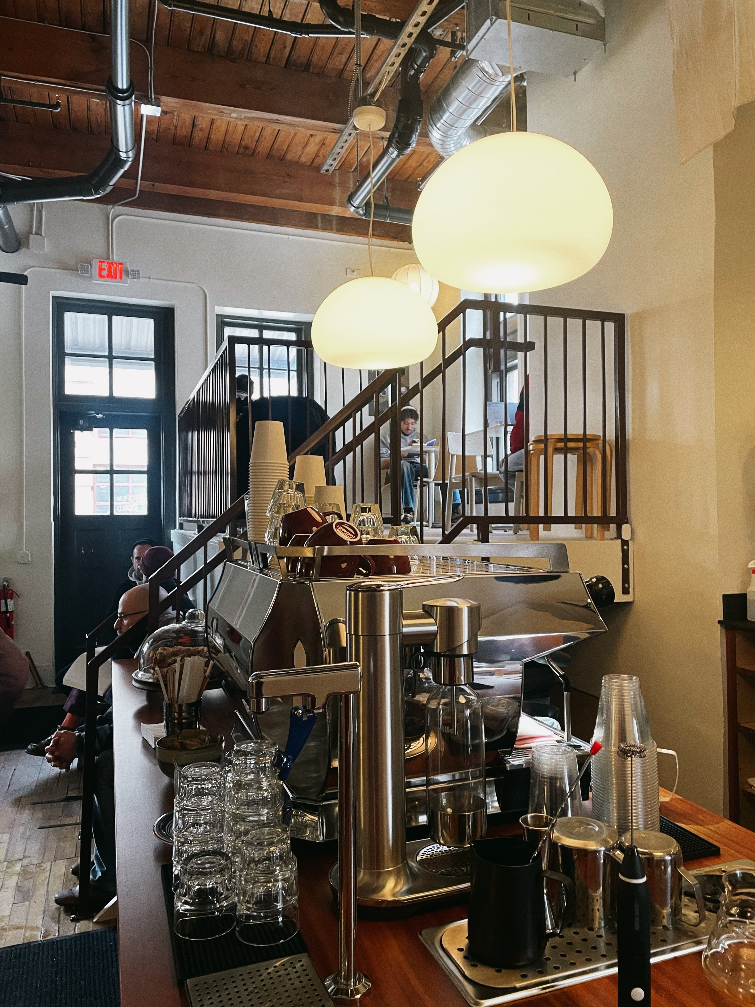 Scratch KC provides the pastries for this cute new spot. The bell jar case at the front is the perfect display in the space. I got to peep mouth-watering almond croissants and thick slices of berry breads that I know are insanely delicious, based on personal experience. Cruffins are newly on the menu as well, with delicious fillings like lemon curd.